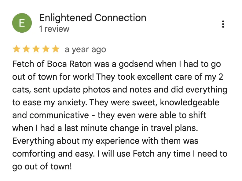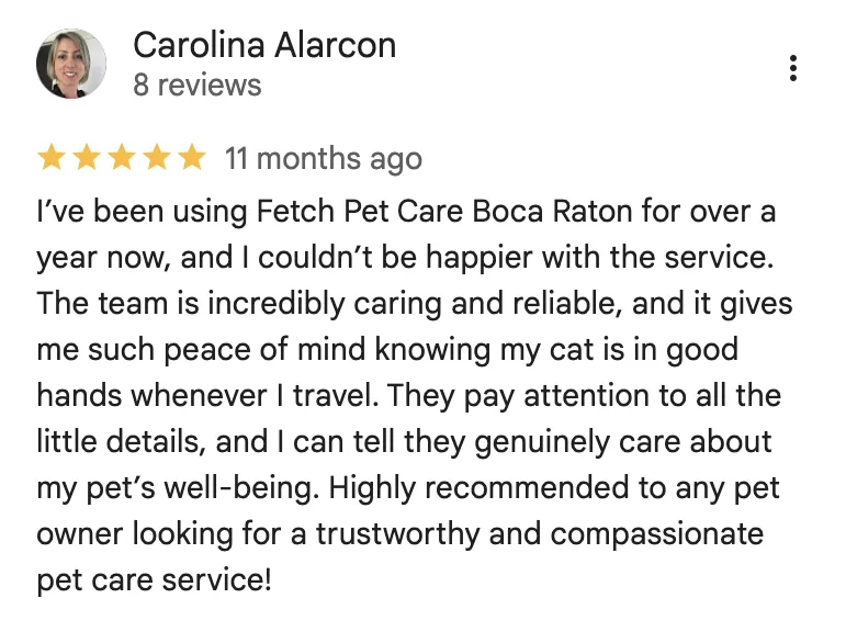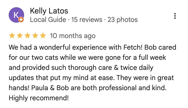 Yes — your pet’s well-being and your home’s security are our top priorities. Only your assigned Pet Care Provider Team has access to your home. Every visit is GPS-tracked, monitored, and time-stamped through our Fetch! app for complete transparency and peace of mind.